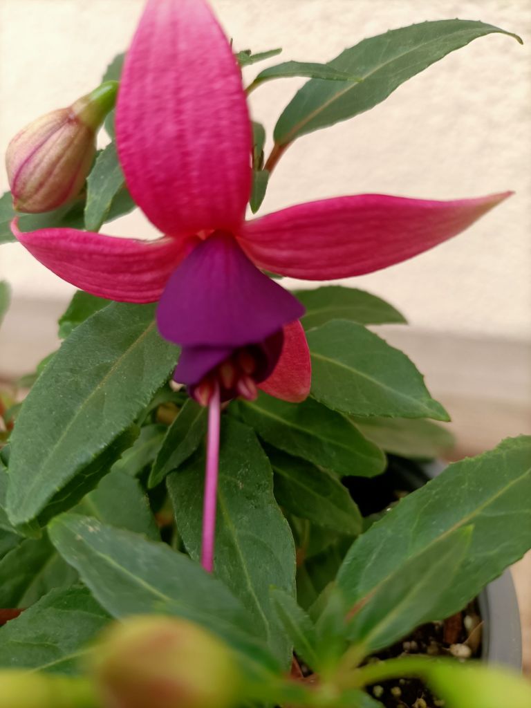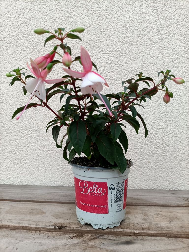 Les fuchsias sont de jolies plantes avec de nombreuses petites clochettes. Ils fleurissent de mai à septembre. Protégés l’hiver ils repartent le printemps suivant. Couleurs : rose, violet, mauve, blanc Pot de 10cm, hauteur 20cm.