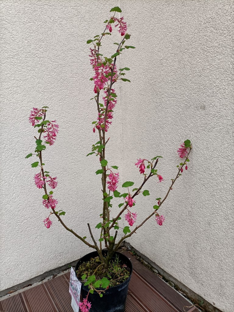 Pot de 7L: 15€Le groseillier à fleurs est un arbuste très florifère aux fleurs roses vives.