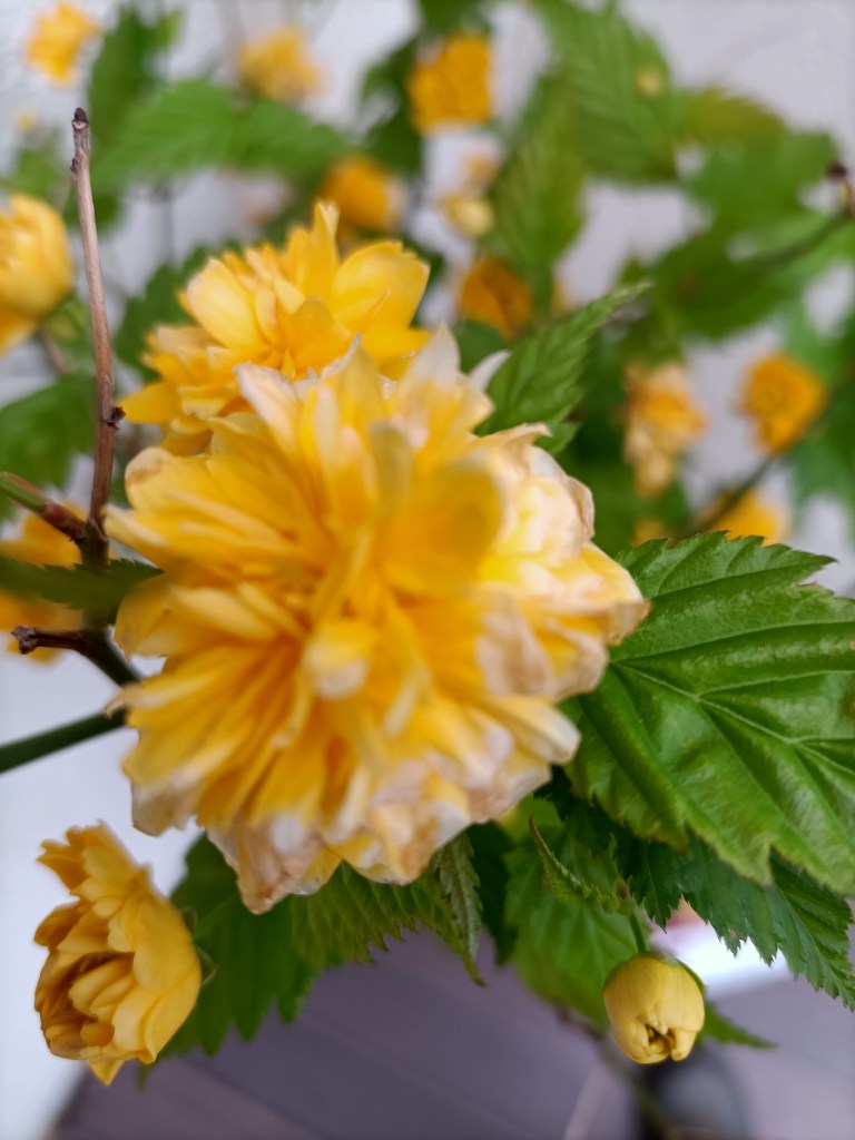 La corête du Japon est un arbuste rustique et caduc aux jolis pompons jaunes vives.
