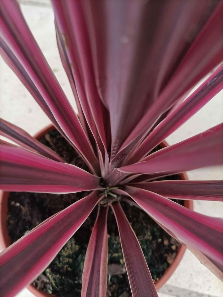 Cordyline poso double au feuillage à tendance rose (5,L): 25€ Cordyline red star au feuillage chocolat (5L): 25€