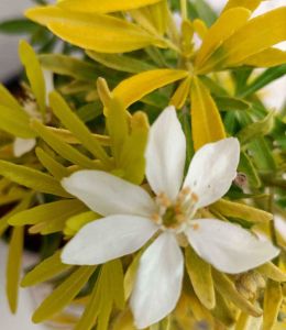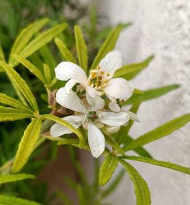 - Oranger du Mexique Aztec Pearl avec ses feuilles finement découpées et ses petites pleures blanches
